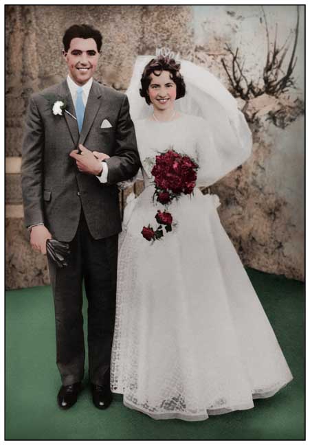Examples of our work 9: a faded wedding photograph re-coloured and tidied up...